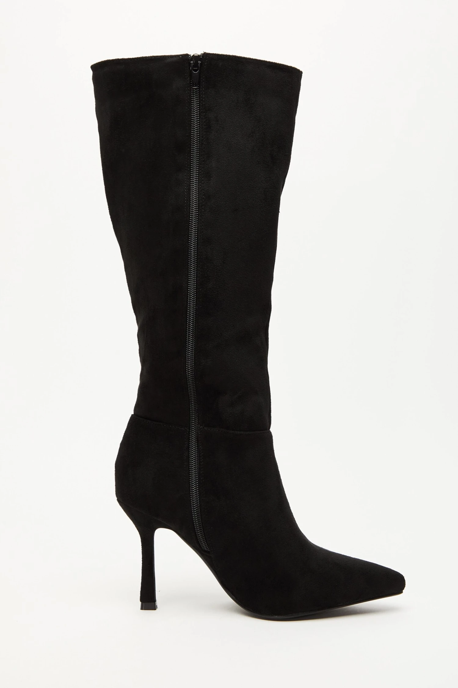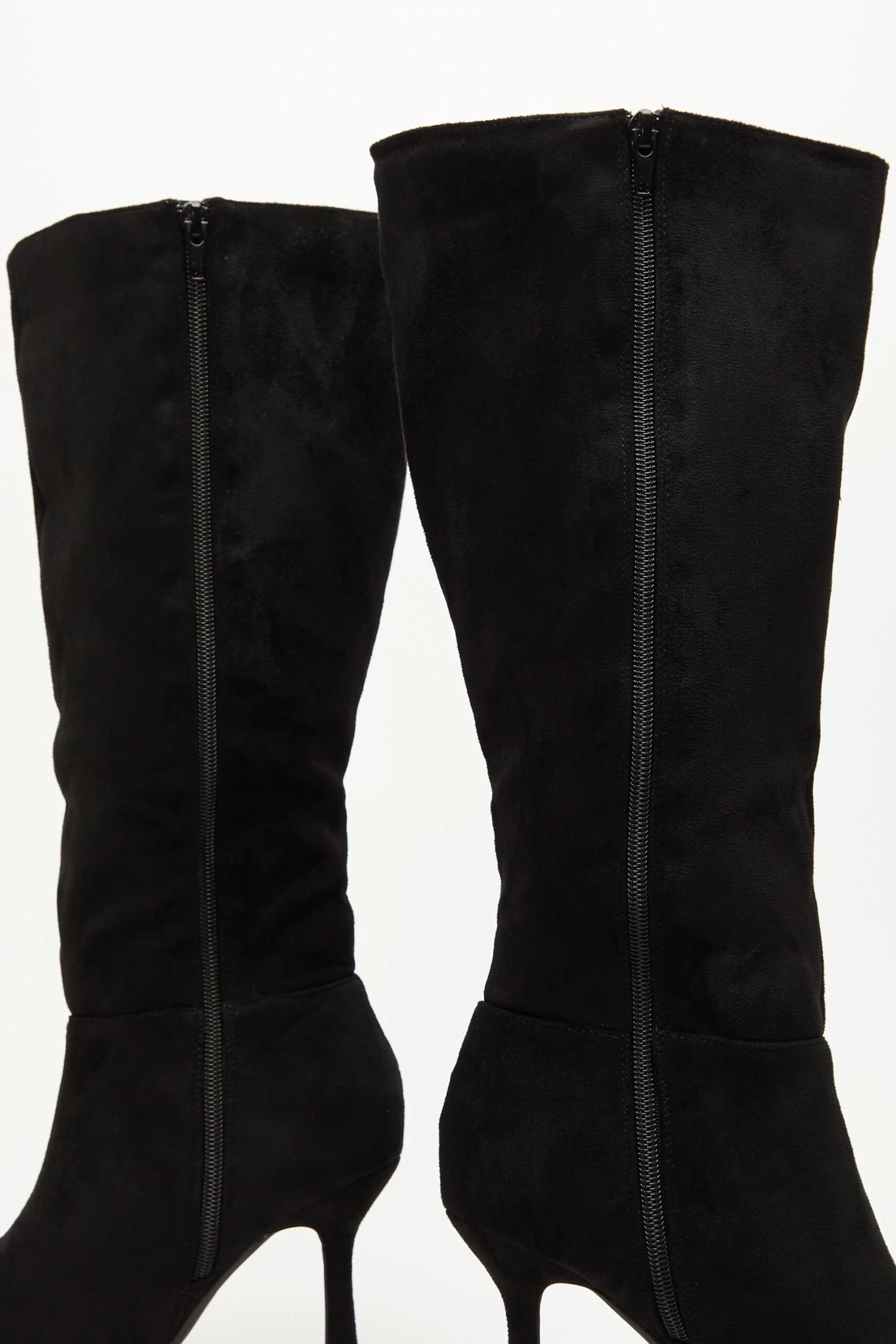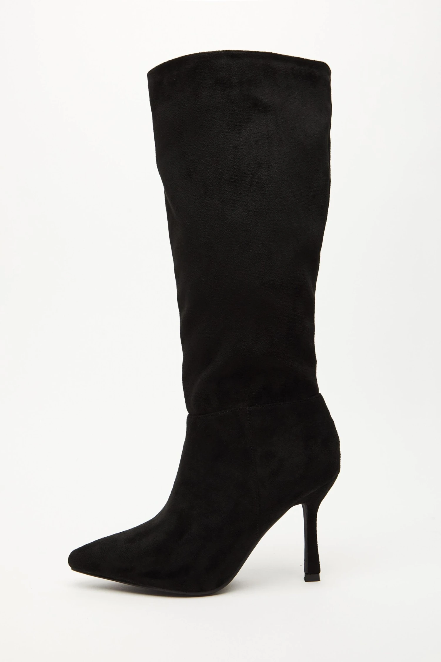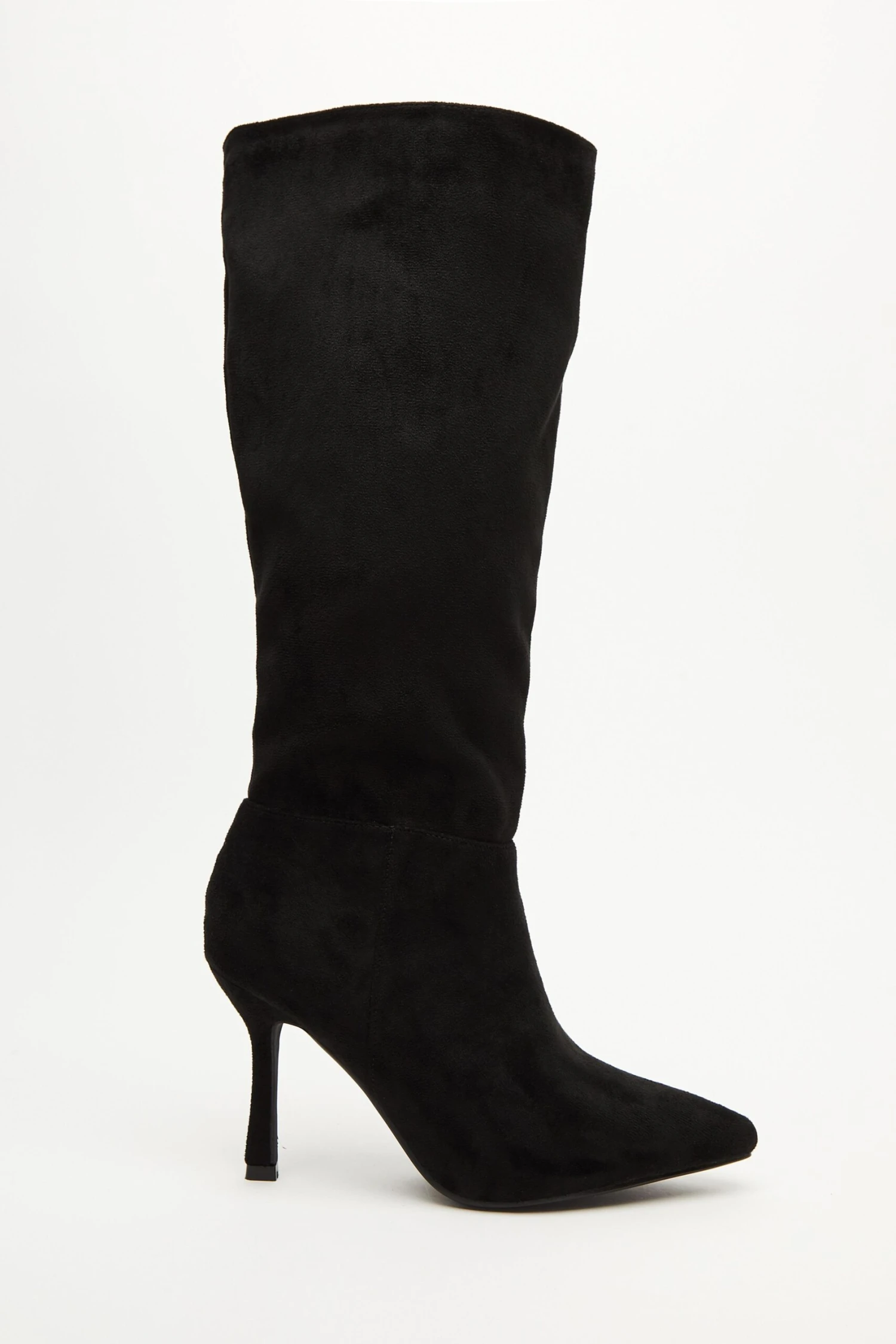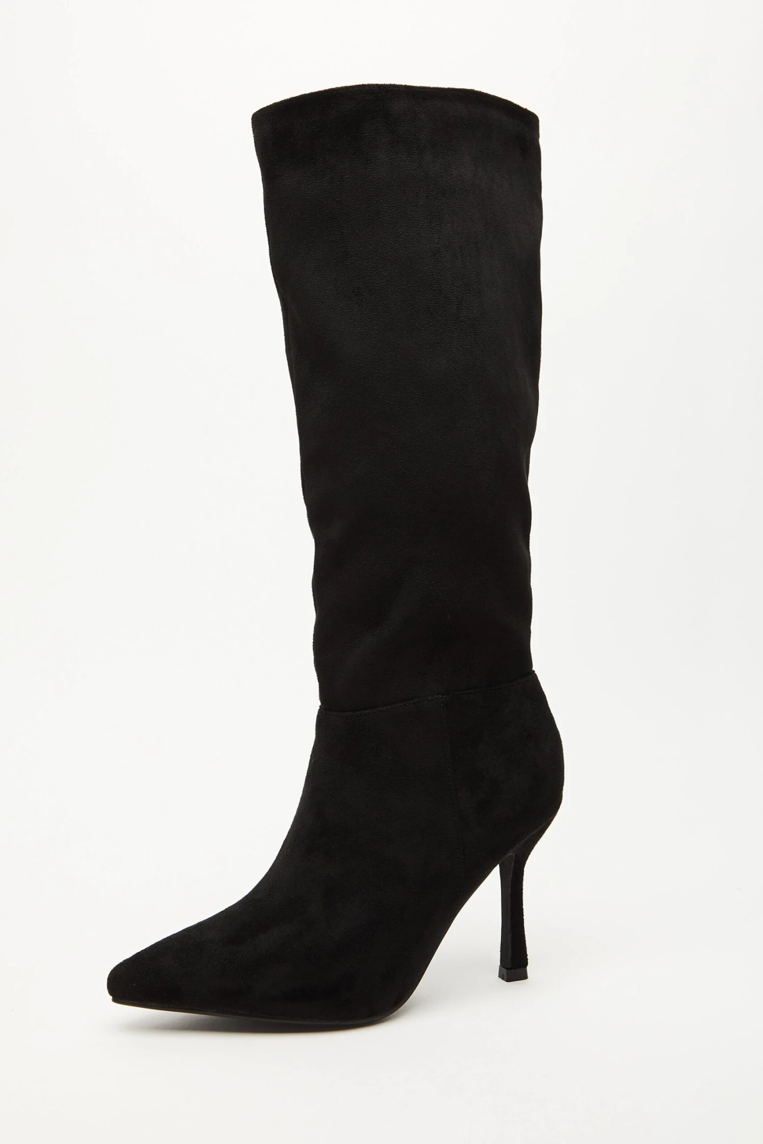 Black Faux Suede Knee High Heeled Boots