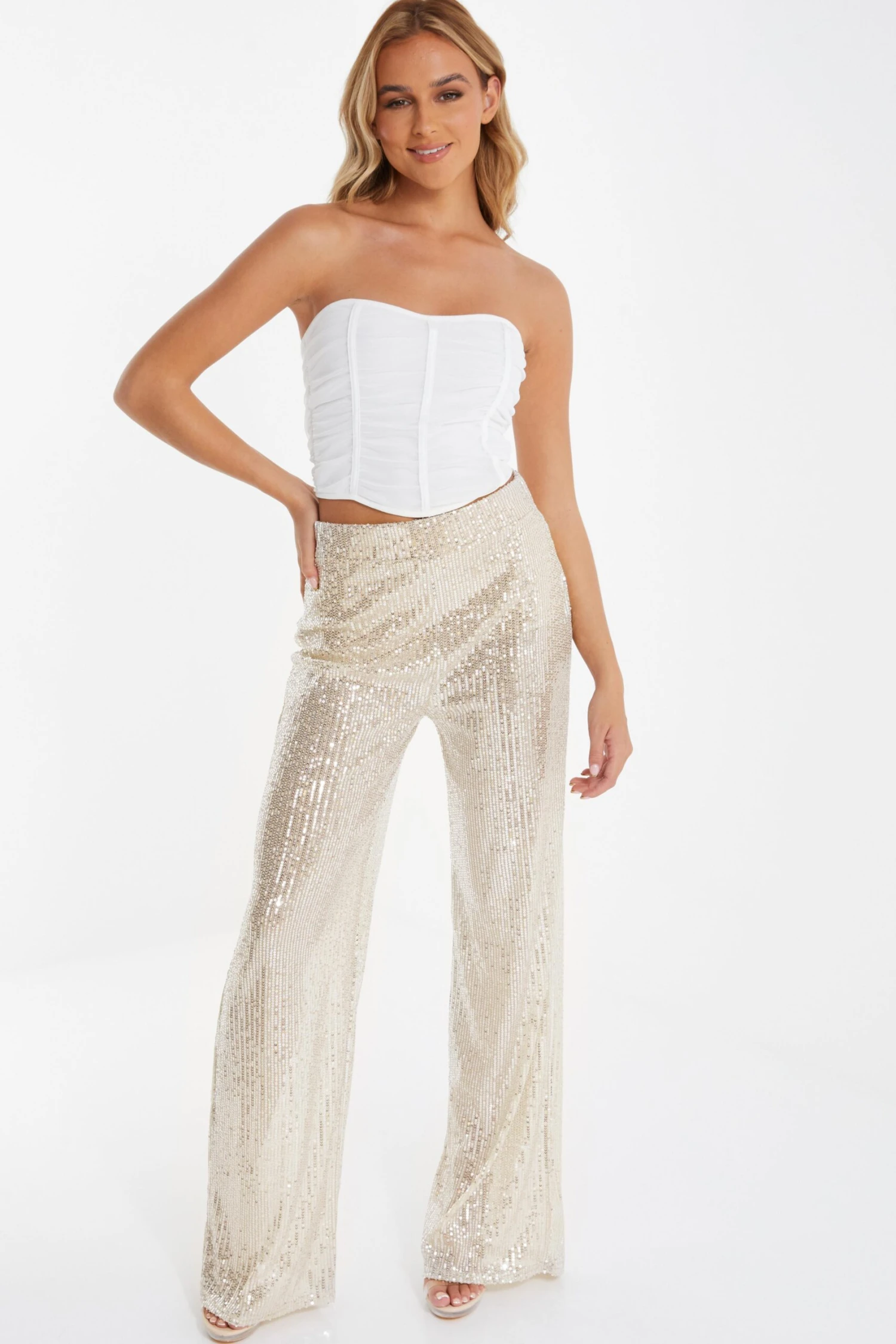 Champagne Sequin Palazzo Trousers