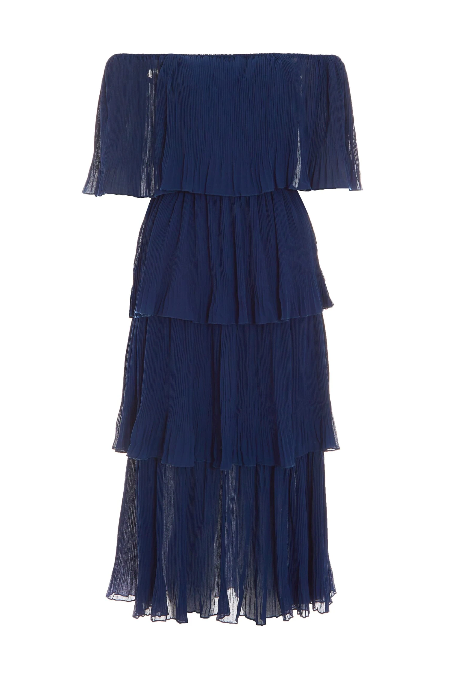 Navy Bardot Pleated Midaxi Dress