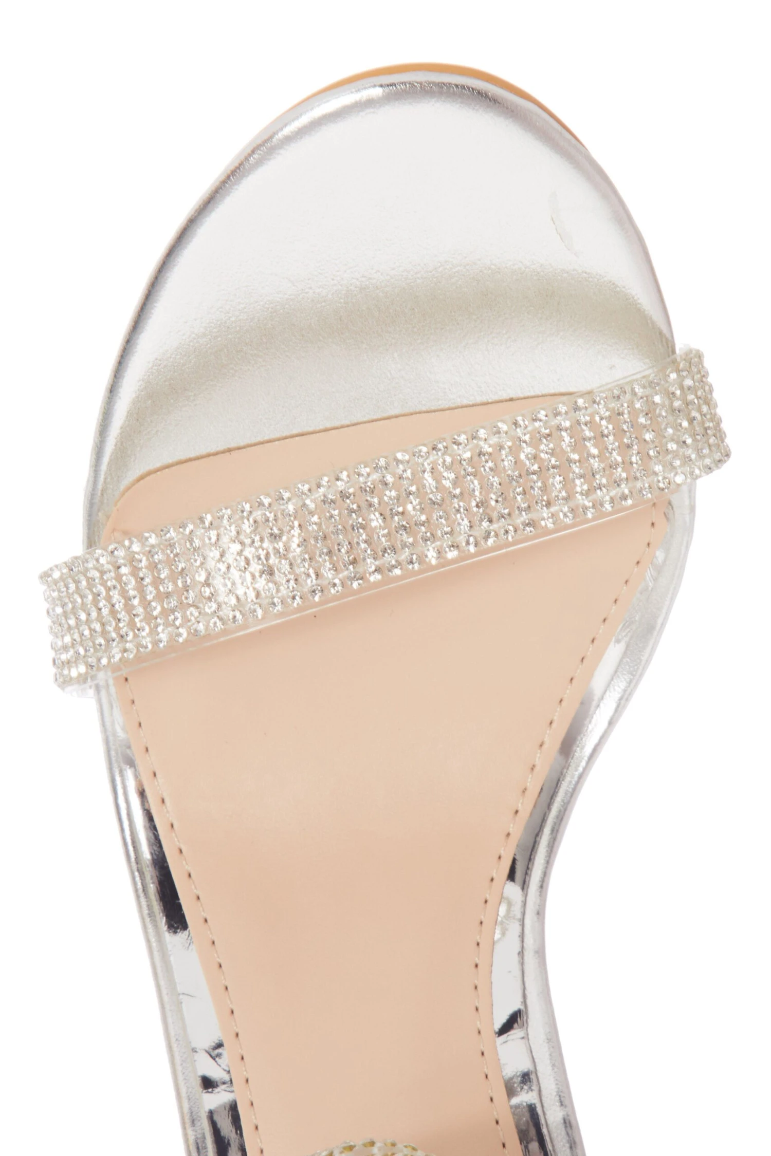 Silver Embellished Clear Block Heel Sandals