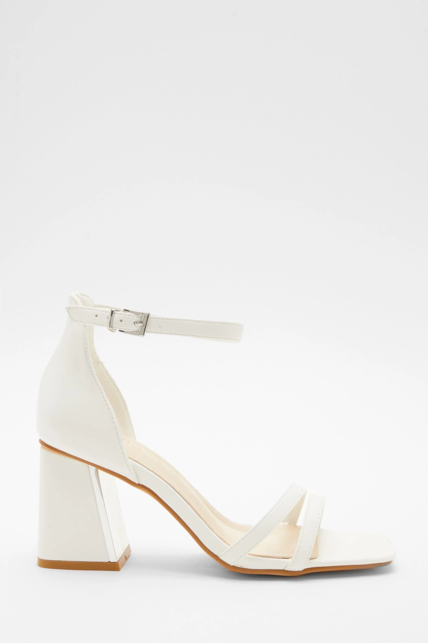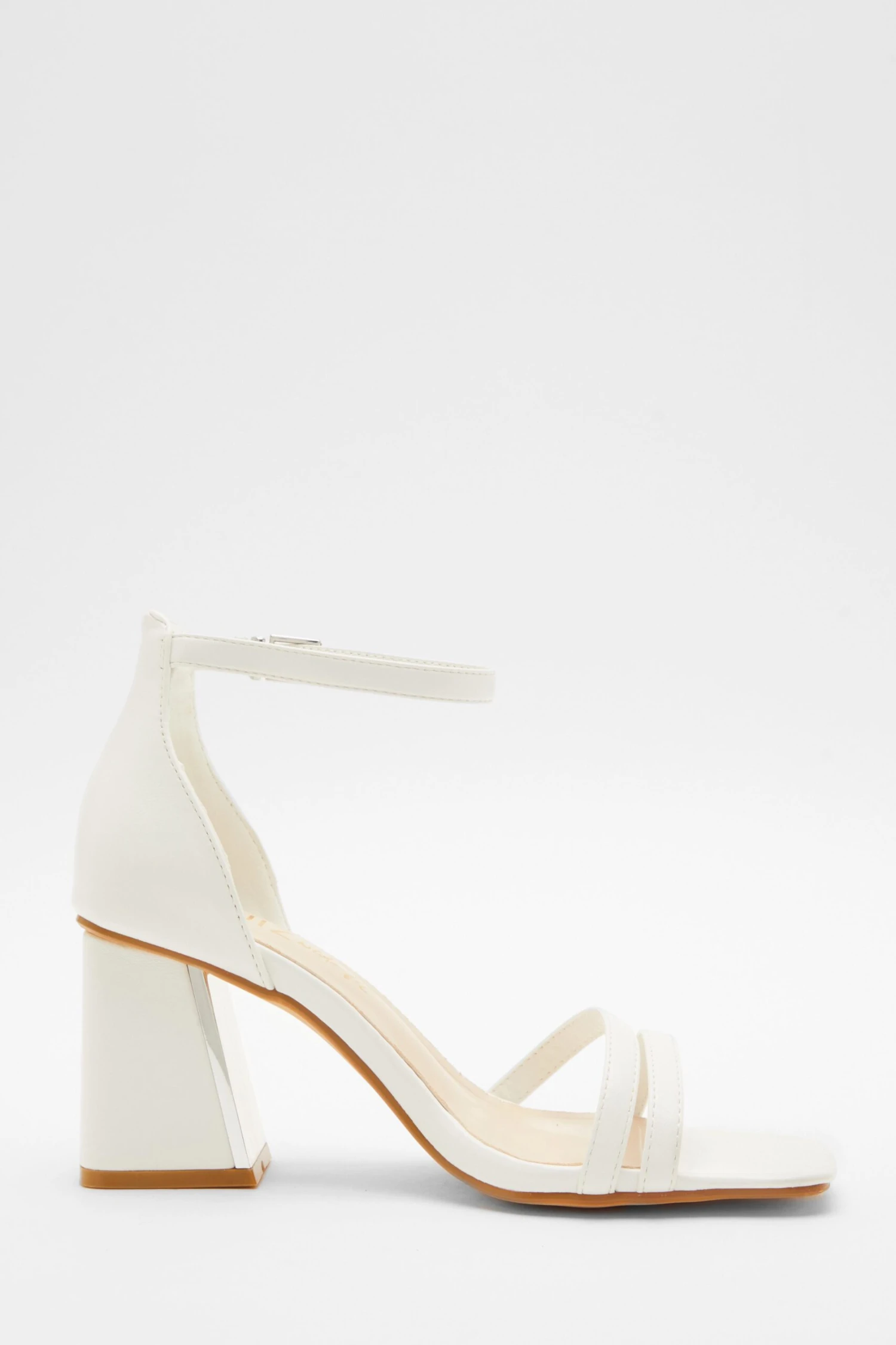Wide Fit White Asymmetric Strap Heeled Sandals