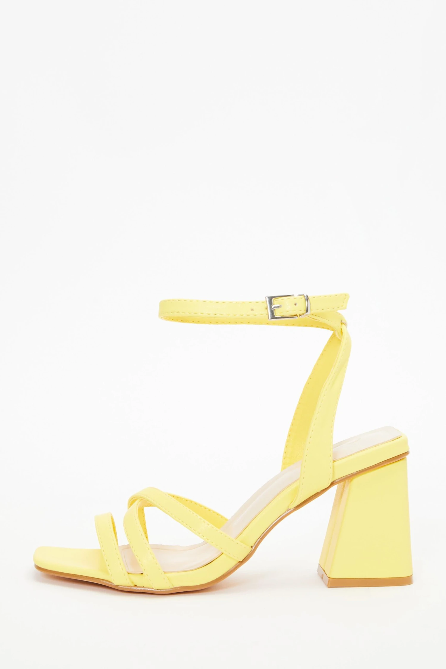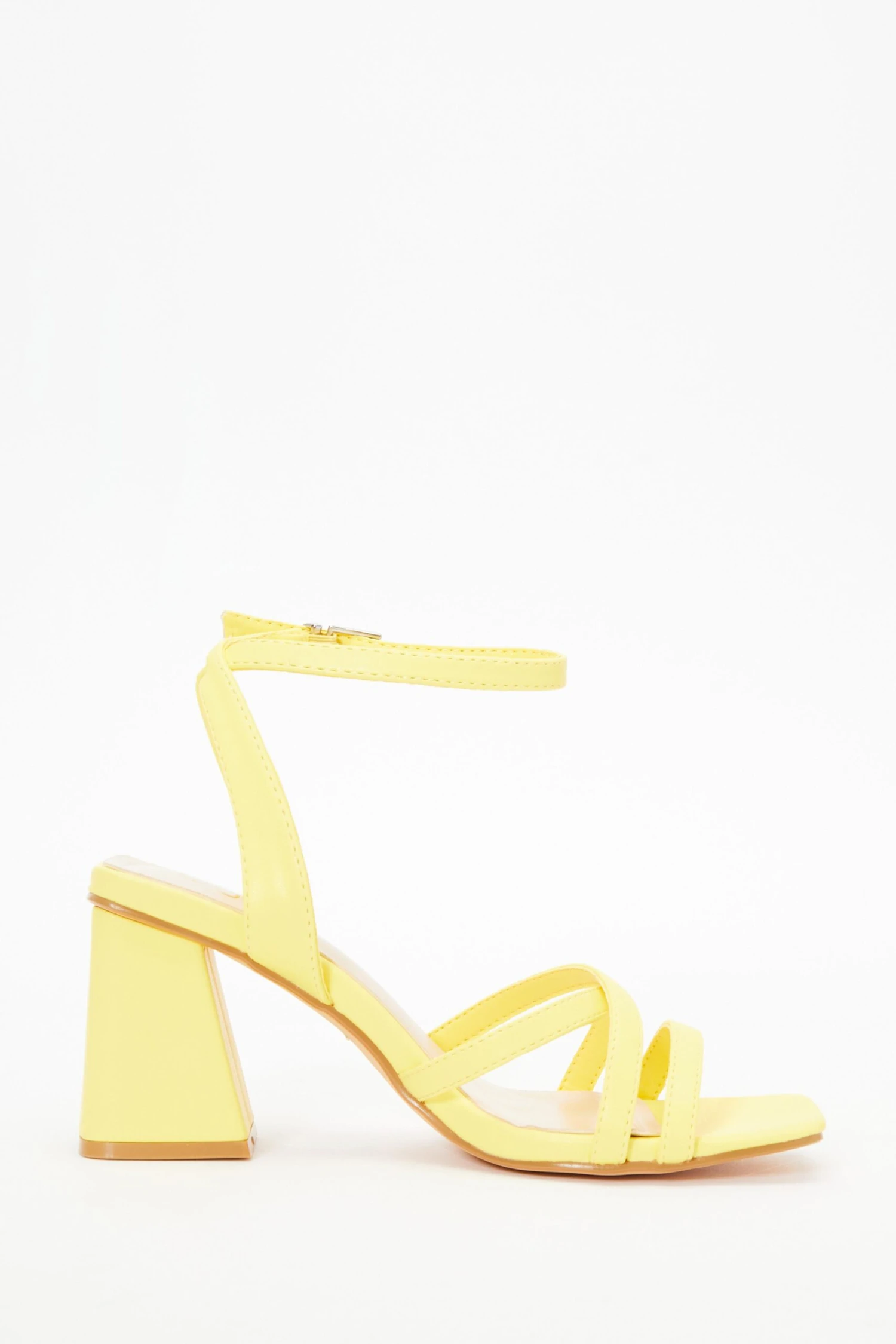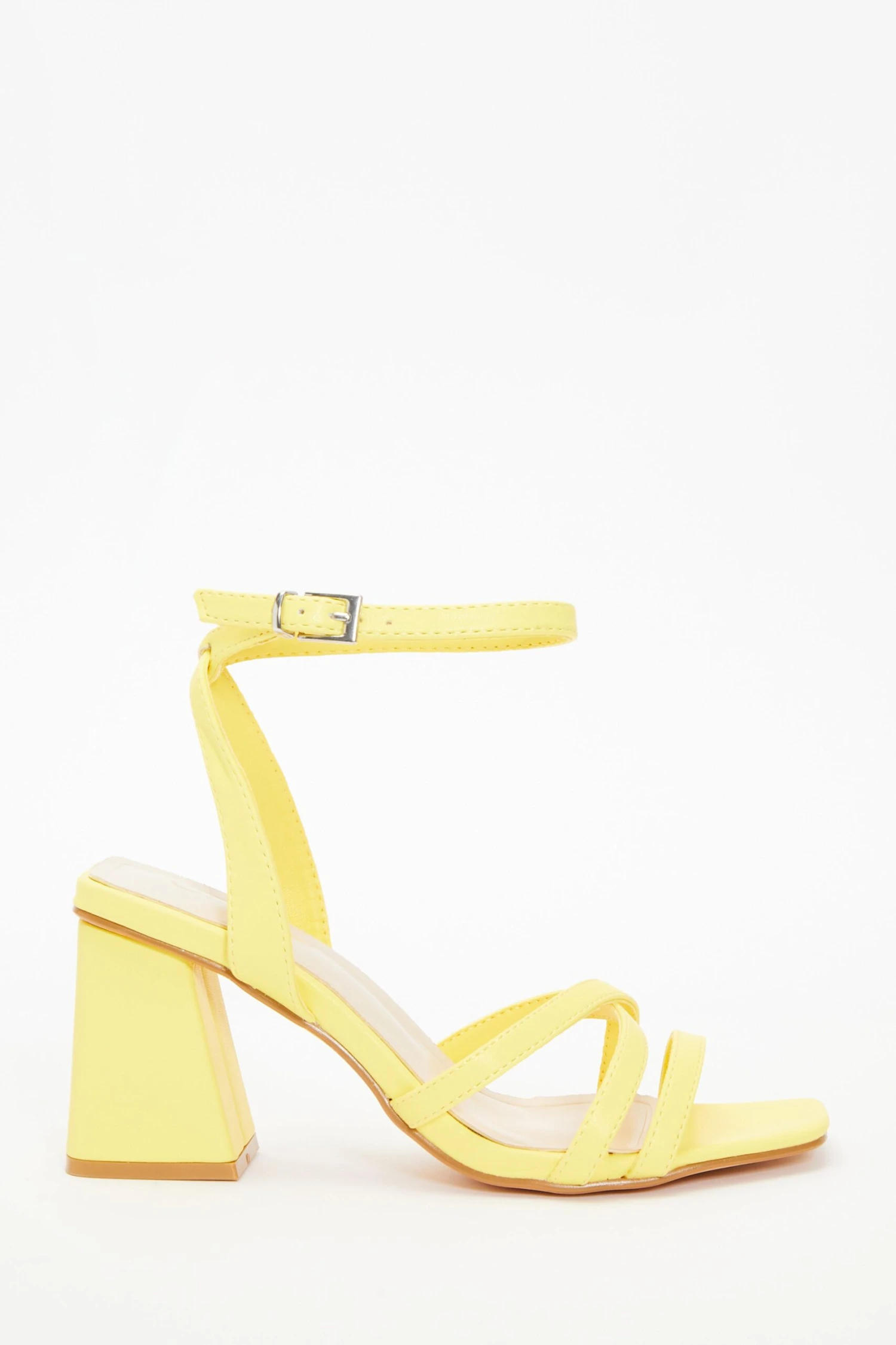 Yellow Cross Strap Block Heeled Sandals